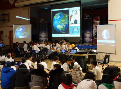 - a TELEBRIDGE, where a dedicated ARISS amateur radio ground station, located somewhere in the world, establishes the radio link with the ISS. Voice communications between your students and the astronauts are then patched over regular telephone lines into your location, usually a gymnasium or auditorium.