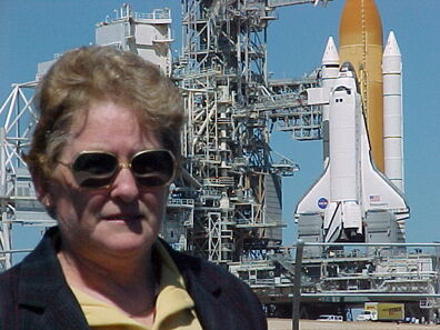 They took us to the launch pad when they were fueling the shuttle, and it surprised me, because they let us off there, and we could have literally thrown stones at the shuttle on the launch pad we were so close. So the next morning, a NASA bus picked us up from our motel about five am. When we got there, we were given a little badge to wear on our lapel to say that we were family and friends. We went to breakfast in the Vehicle Assembly Building, and then we sat down on the bleachers there, because Pad 39b was the launch pad. They had an astronaut explaining things to us. We were about 3-4 kilometers away, which was as close as anyone got to the launch, apart from the emergency crews.