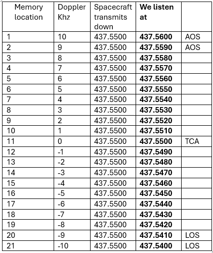 For the ISS Fram2Ham simulation, here are suggested ways to program your radio to receive the downlink. The Doppler shift at 437.550 MHz is approximately +/- 10kHz.