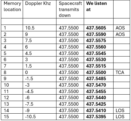 Doppler Correction Tables for Fram2Ham SSTV