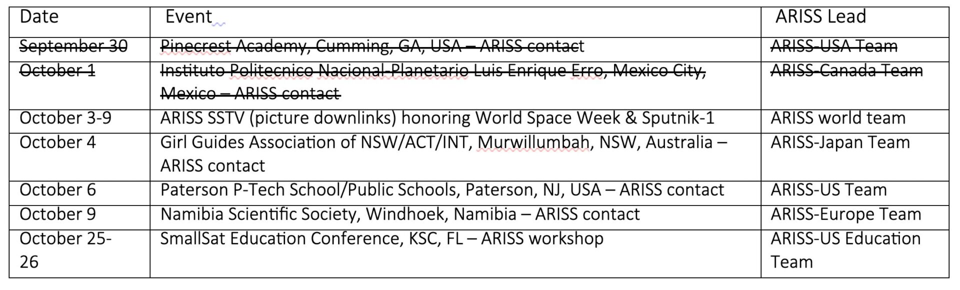 September 30: At Pinecrest Academy, a K-12 school in Cumming, GA, students talked with Mike Fincke during an ARISS radio contact. He answered 20 questions with an audience of 550 at the school watching the students. The public could choose from two livestreams (one link is https://www.youtube.com/watch?v=ov7yPw0PzUg) and these generated 800 viewers, which increased to over 1,268 within two days. Forsyth County News ran blurbs about the contact on Facebook, X, and Instagram. To prepare for this day, faculty had inspired youth to engage in initiatives tied to space, exploration, and communication, such as discovering different NASA employees’ careers, bioastronautics, the solar system, and sound waves. AP English students created a weekly ARISS newsletter, young students visited a planetarium, and the school established an amateur radio club.